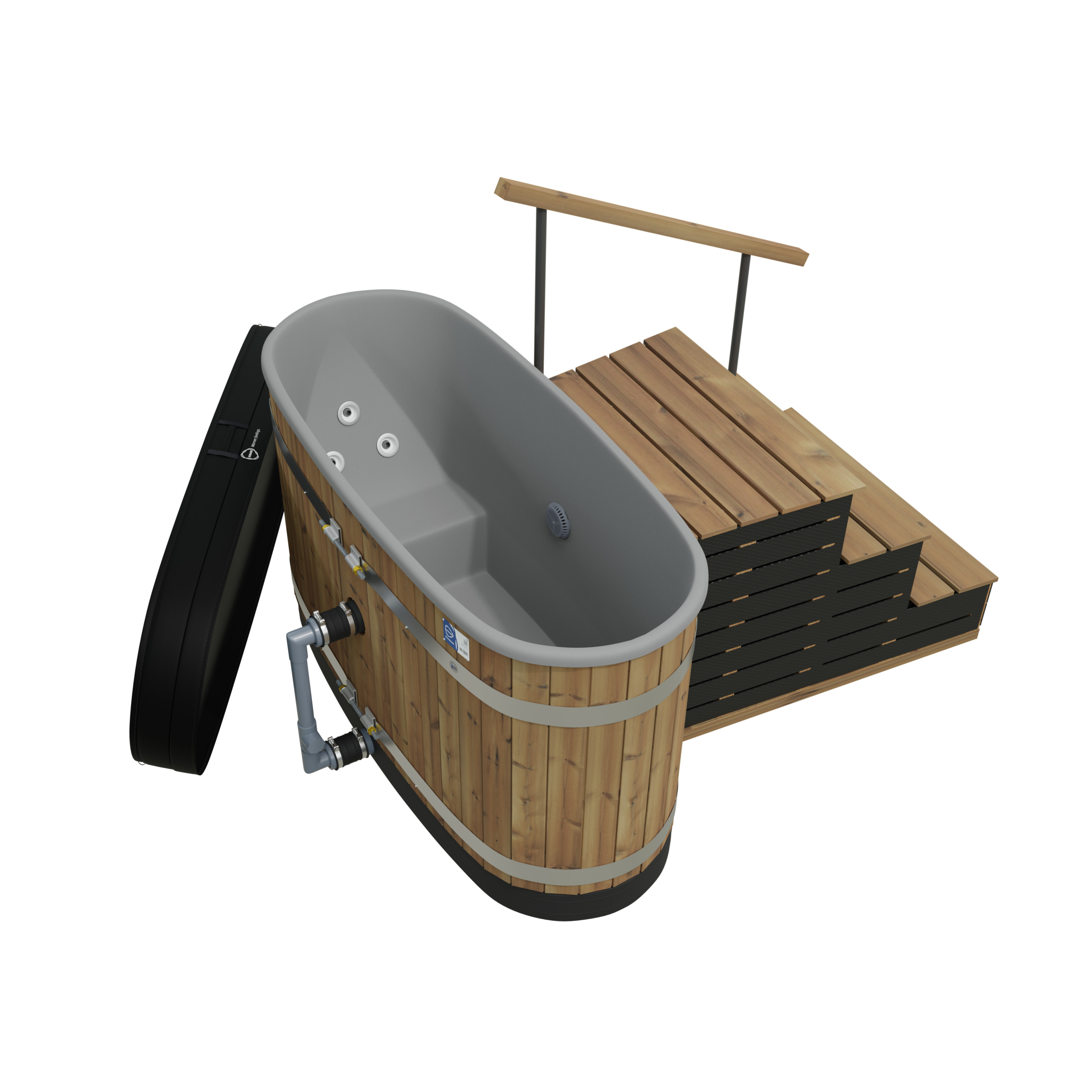 Nouveauté chez Kirami : le Tiny Flow. un bain nordique à jets massants WaterJets, 6 au total (3 de chaque coté).