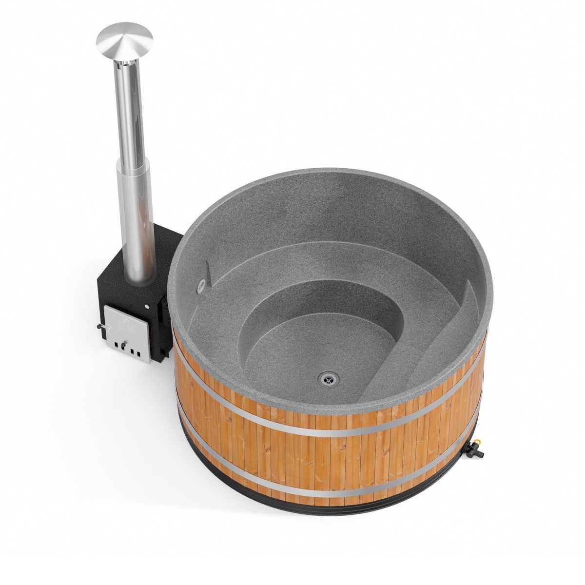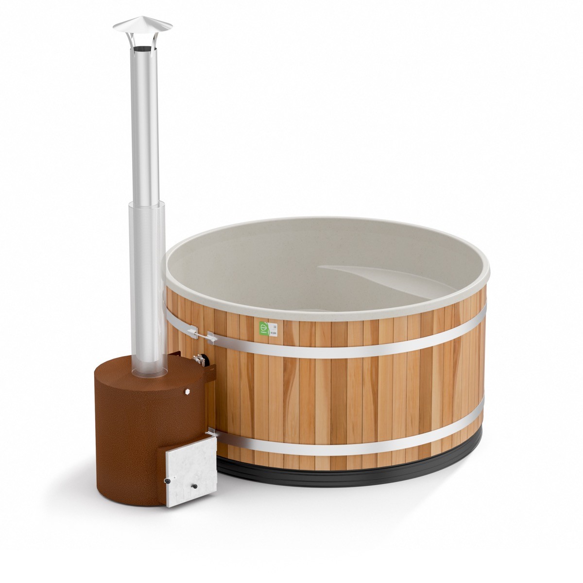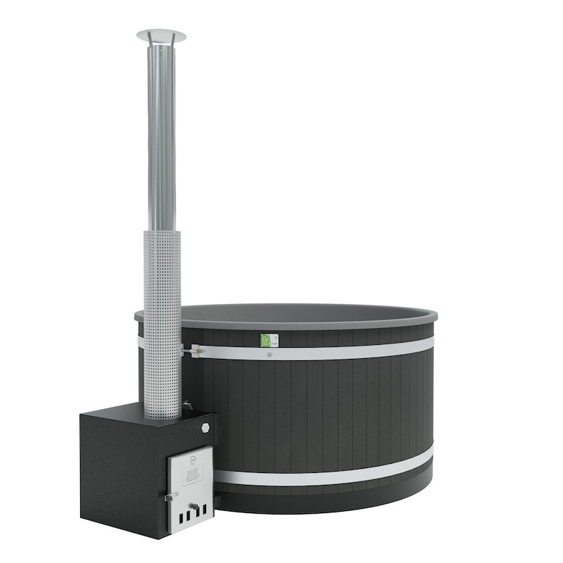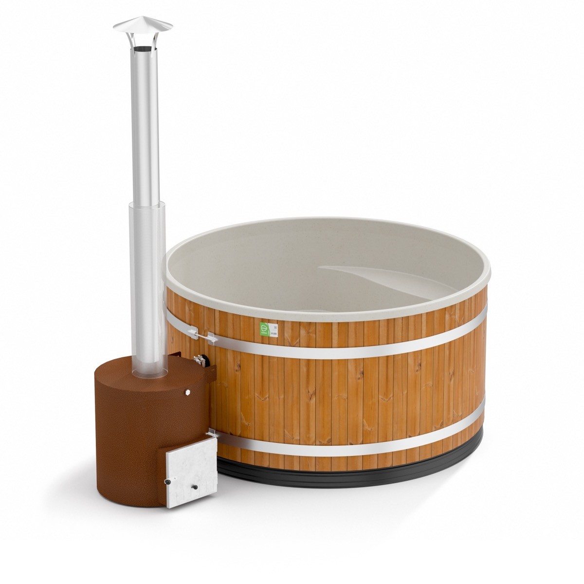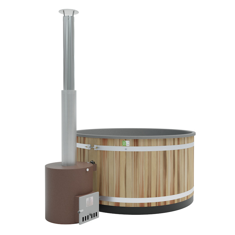 Le bain nordique Family L est livré avec le poêle CUBE 35kW (ou en option poêle TUBE 42kW), le kit de cheminée de 2 mètres et la vanne de vidange.