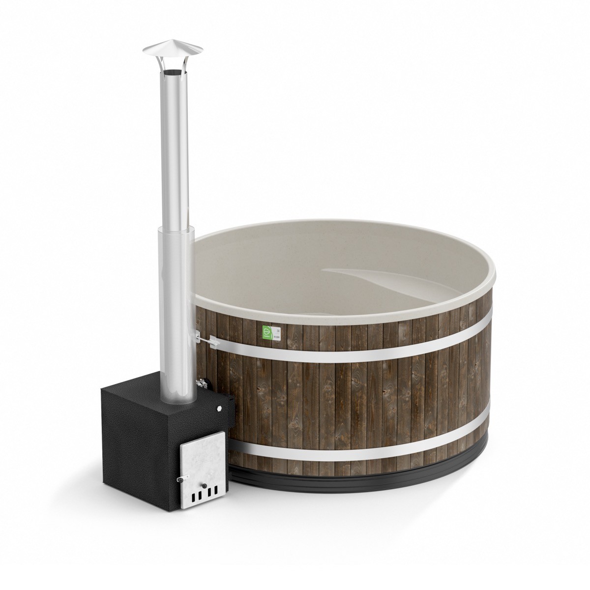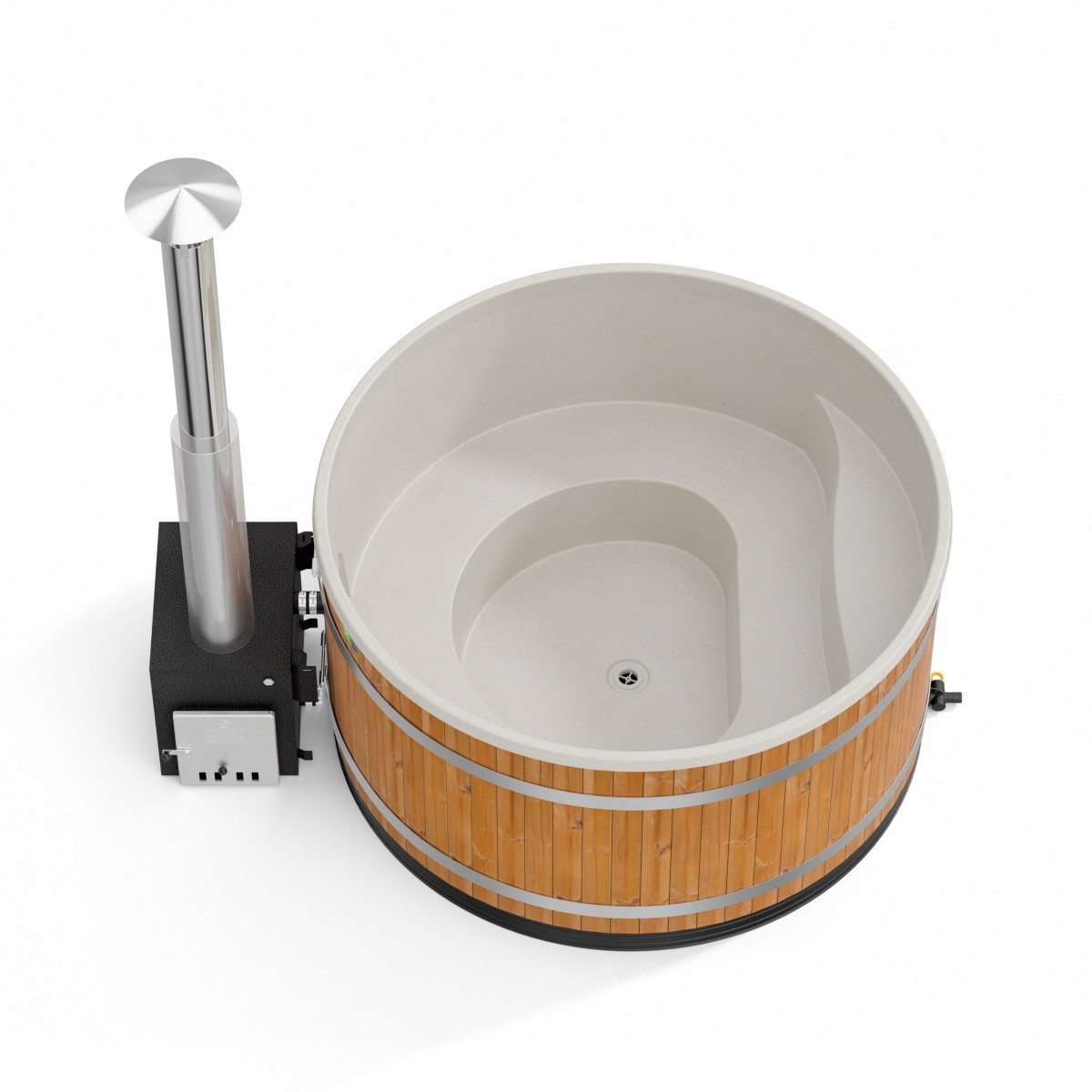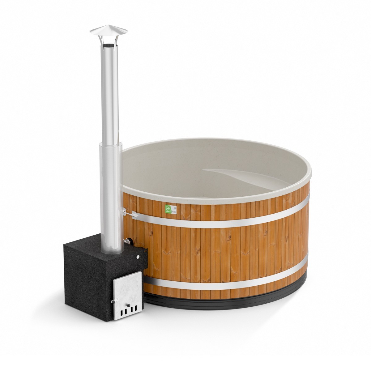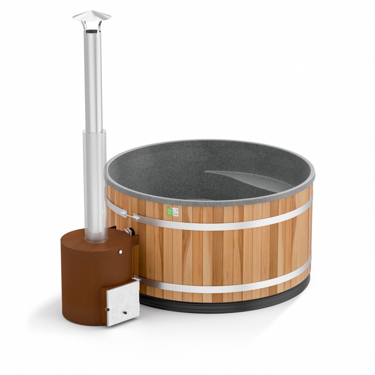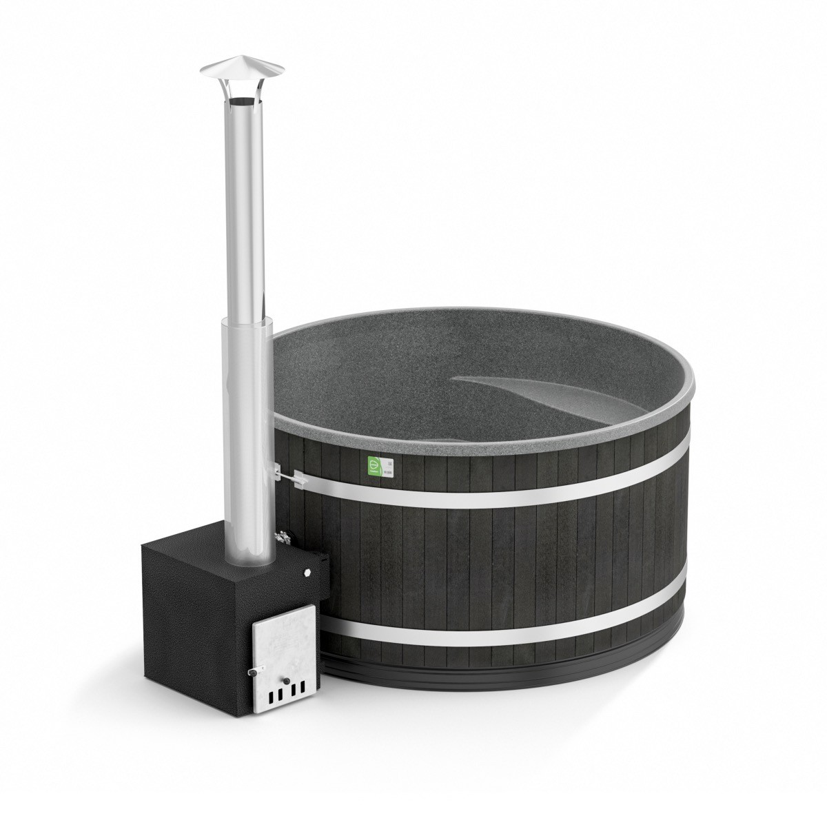 Le bain nordique Family L est livré avec le poêle CUBE 35kW (ou en option poêle TUBE 42kW), le kit de cheminée de 2 mètres et la vanne de vidange.