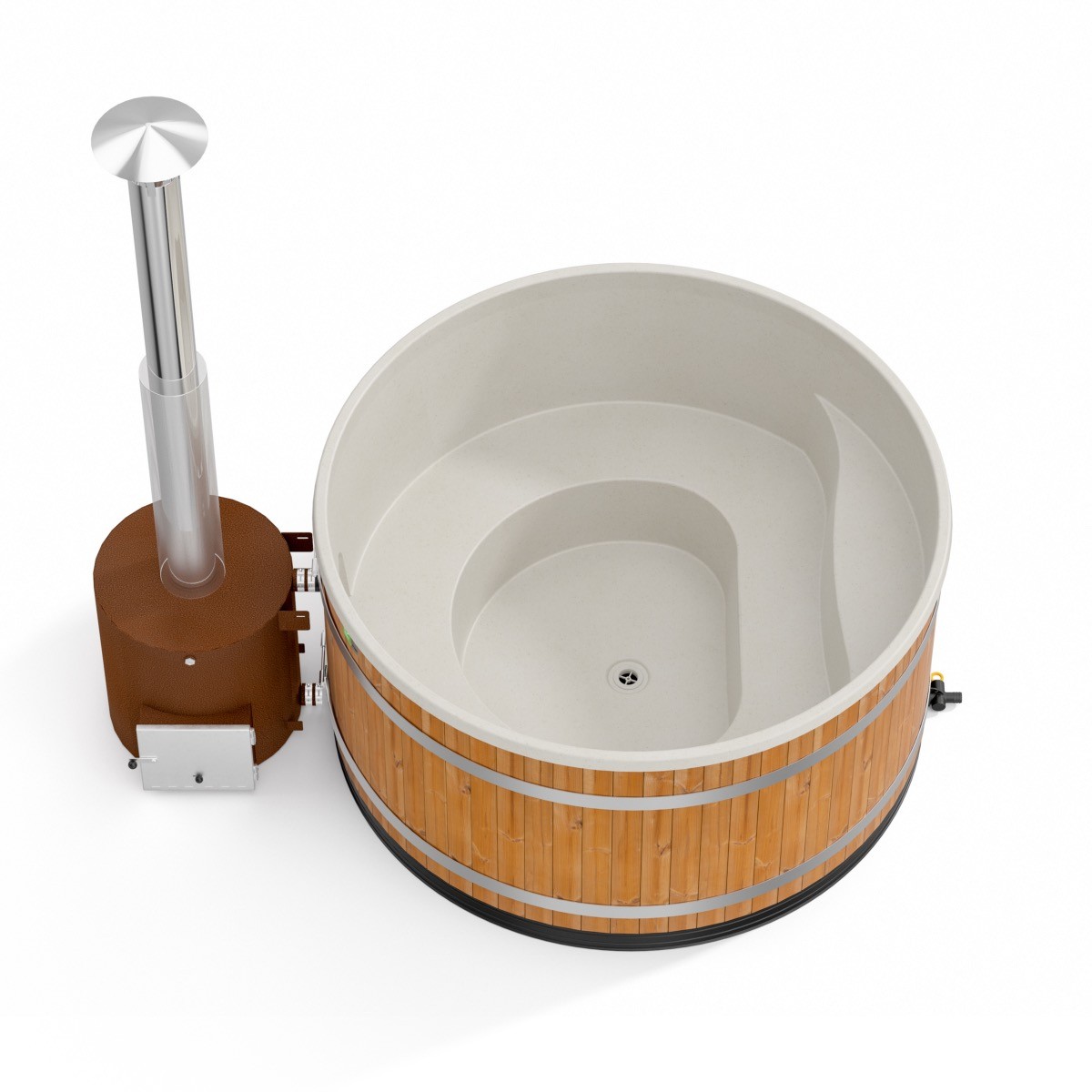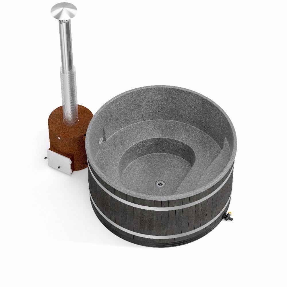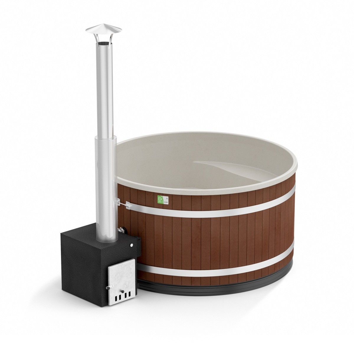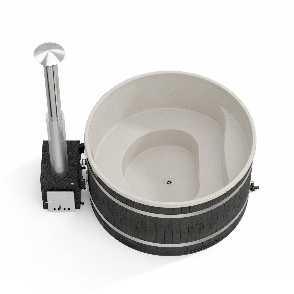 Le bain nordique Family L est livré avec le poêle CUBE 35kW (ou en option poêle TUBE 42kW), le kit de cheminée de 2 mètres et la vanne de vidange.