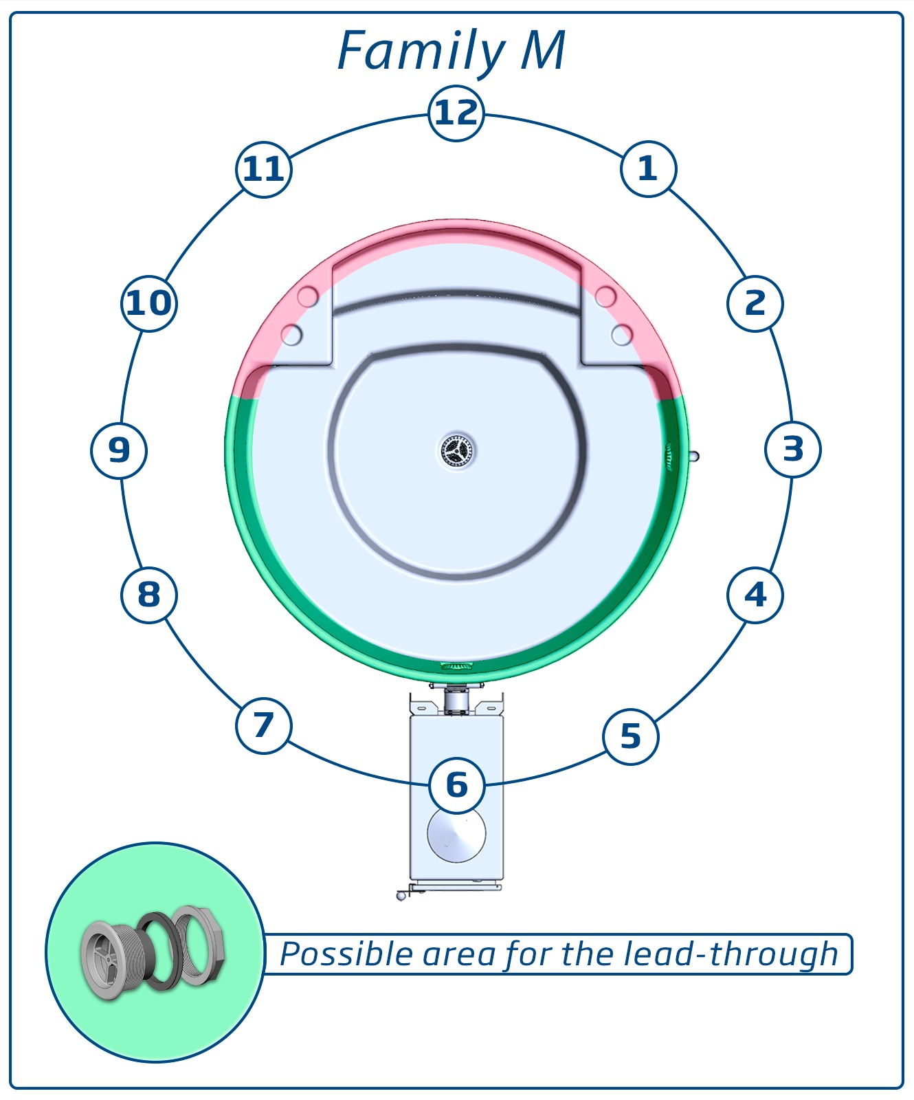 L’emplacement du passe-cloison est personnalisable à la commande (schéma disponible dans l’onglet Pièces jointes).