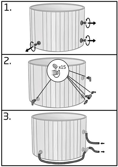 Le kit permet de connecter un appareil de filtration à un bain nordique en bois de type Woody.