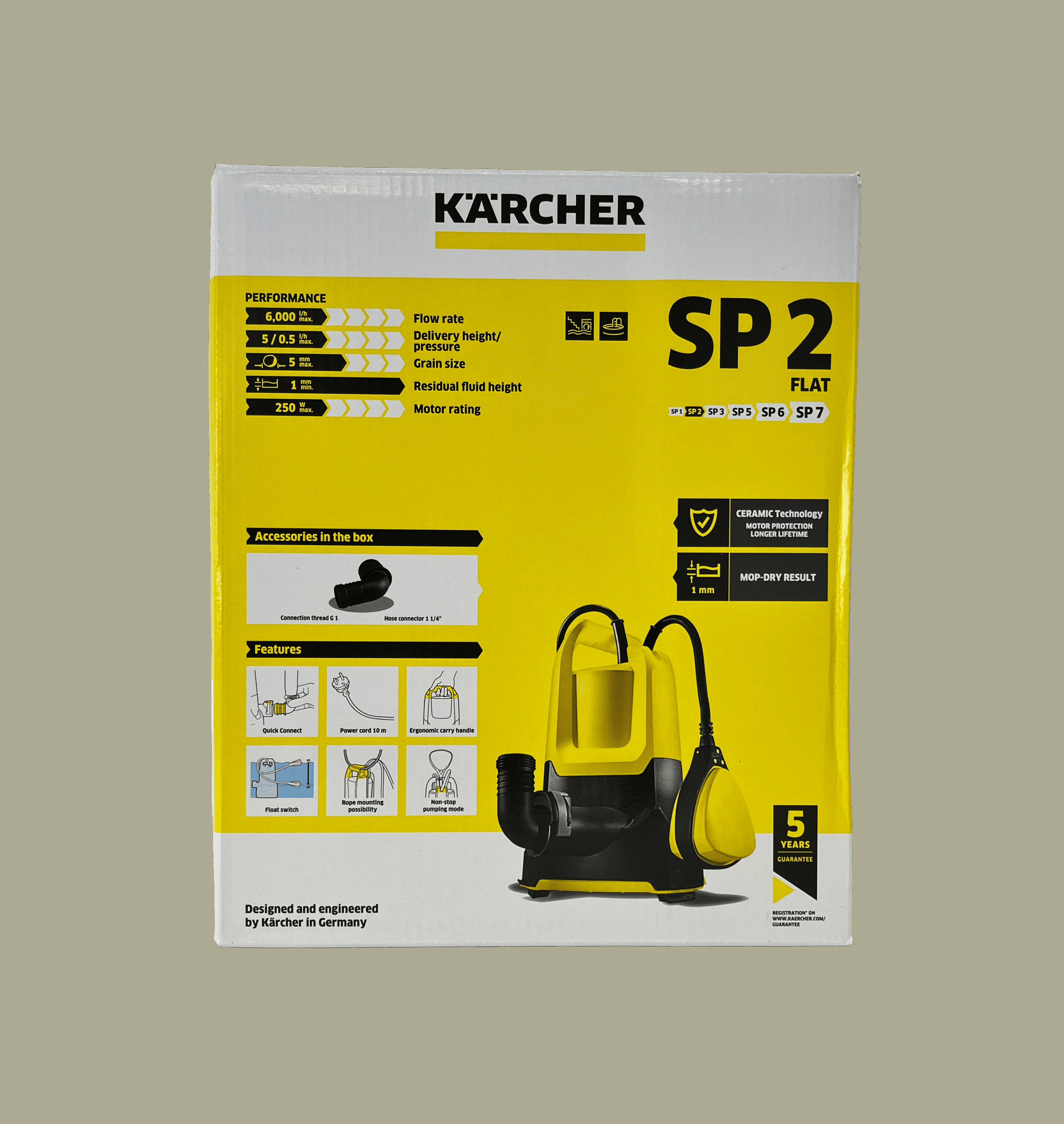 Avec une capacité allant jusqu’à 6 000 l/h, la Kärcher SP2 Flat est idéale pour vidanger des bassins de différentes tailles. Son joint à anneau glissant robuste rend la pompe particulièrement durable. La SP2 Flat dispose également de pieds repliables, permettant d’atteindre une capacité plus élevée. Lorsque les pieds sont repliés, la pompe commence à un niveau d’eau aussi bas que 7 mm et pompe jusqu’à 1 mm, laissant la surface entièrement sèche. Le raccord rapide permet de connecter facilement et rapidement le tuyau à la pompe.