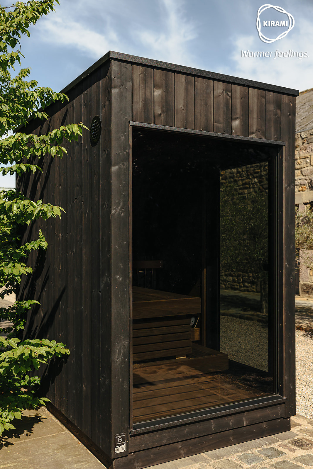– Chauffe rapide grâce au poêle Harvia Glow Corner 6.8kW et poêle à bois Harvia M3