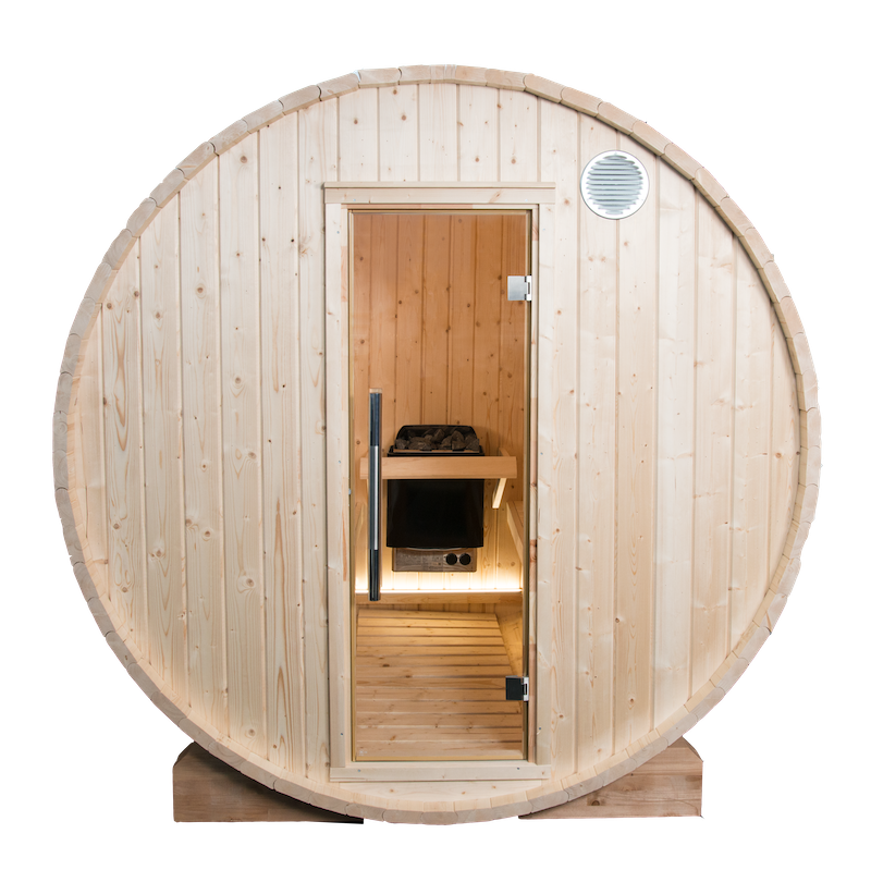Le sauna tonneau Revontuli est composĂ© de :Â